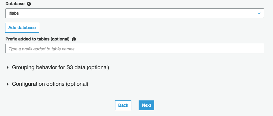 When you create the crawler, provide the Lake Formation database that you created earlier as part of the Crawler’s output configuration.